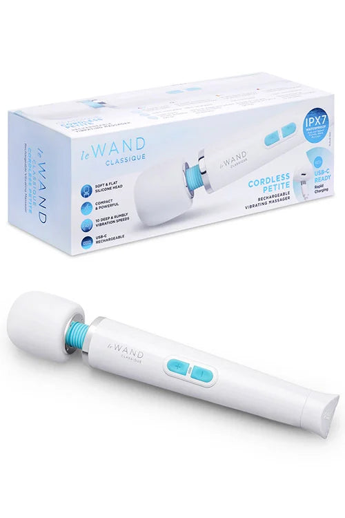 Le Wand Classique Cordless Petite Wand Massager Power meets precision in this award-winning cordless massager. The Classique Petite delivers deep, rumbly vibrations in a compact, travel-ready design—no compromise on performance. Its longer handle and flexible neck adapt to your body's contours, while the velvety silicone head glides with effortless control. Choose from 10 vibration intensities to shift from gentle relaxation to intense sensation. Cordless freedom means pleasure on your terms, anywhere, anytime. Sculpted for comfort and built for boldness.