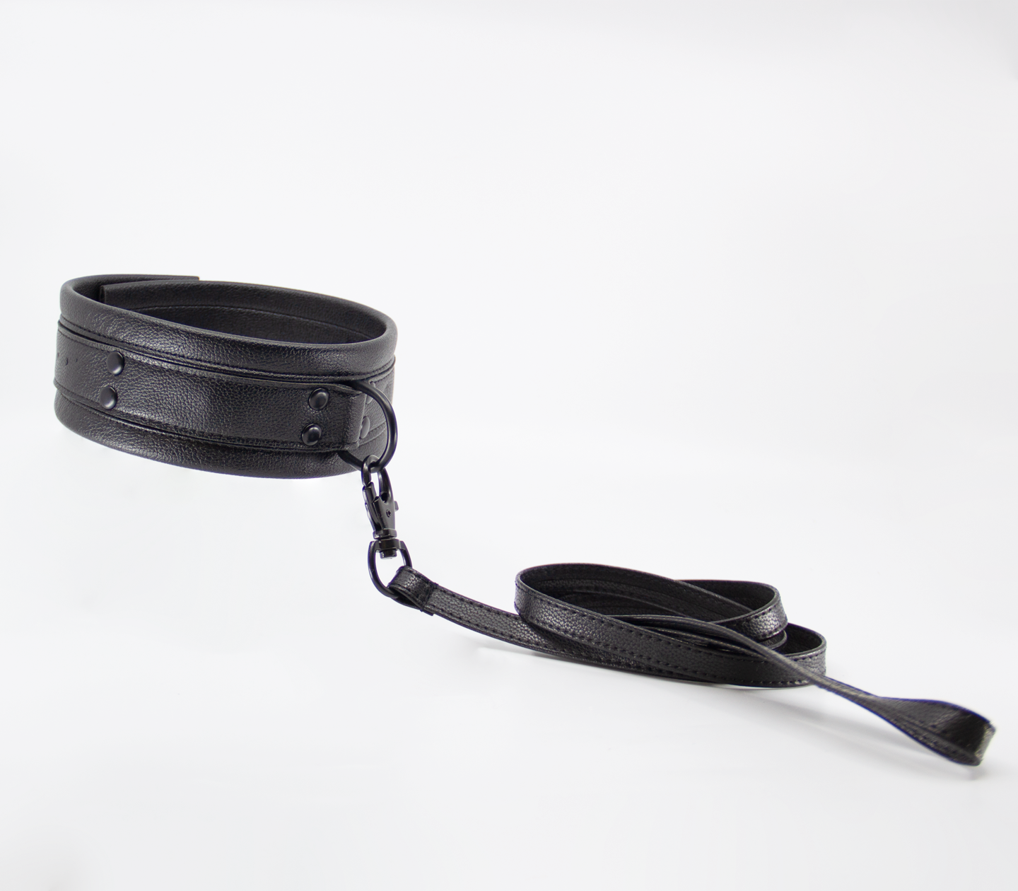 Elevate your style with this daring soft padded collar and lead set. Crafted from lightly padded, vegan-friendly faux leather, it offers comfort without compromise. Matte black metal hardware adds an edgy touch, while the 1” centre dee and buckle closure ensure a secure, adjustable fit from 35.5cm to 47cm. The 112cm lead completes the set, perfect for bold, confident moments. Matching items available to complete your look.